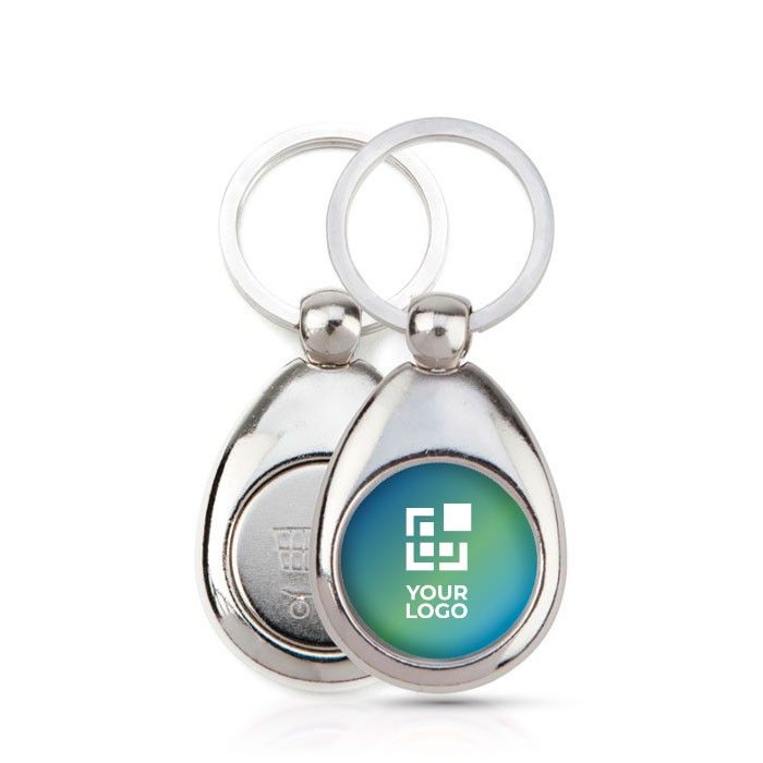 Portachiavi in metallo con gettone personalizzabile, pratico e resistente.