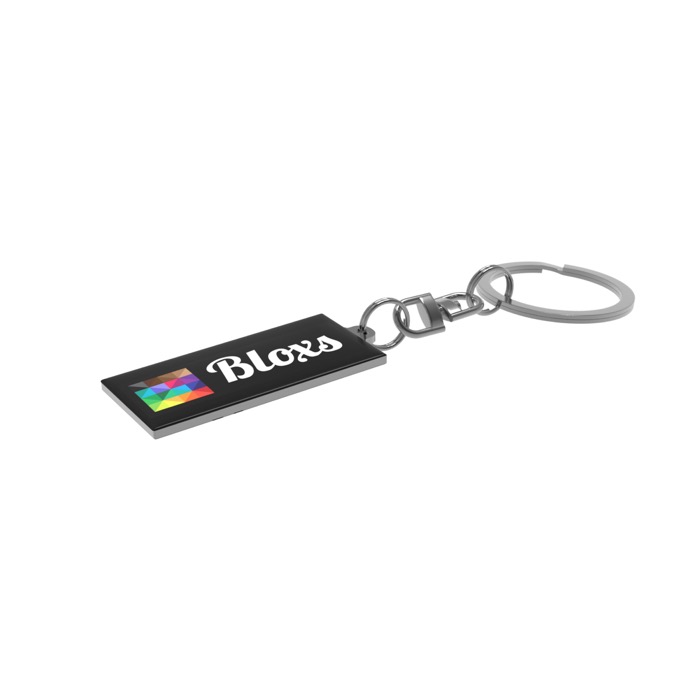 Portachiavi rettangolare in metallo con stampa a colori su ambo i lati. Mantieni il tuo marchio presente e visibile nella quotidianità di clienti e dipendenti.