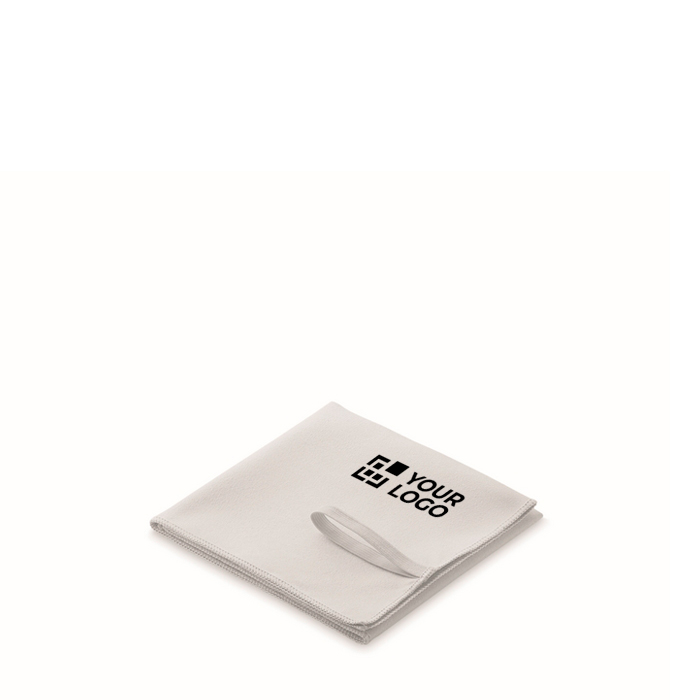 Asciugamano in microfibra in una miscela di 90% poliestere e 10% poliammide, pensato per un uso pratico e frequente. Include una fascia elastica per trasportarlo o appenderlo facilmente e mantenerlo in ordine. Il tessuto è leggero e ad asciugatura rapida, aiutando a ridurre l’umidità dopo l’uso. Con dimensioni di 30 x 50 cm, entra comodamente in borse da palestra, beauty case o kit da viaggio. Consigliato per azioni di benvenuto, eventi sportivi o pack aziendali.