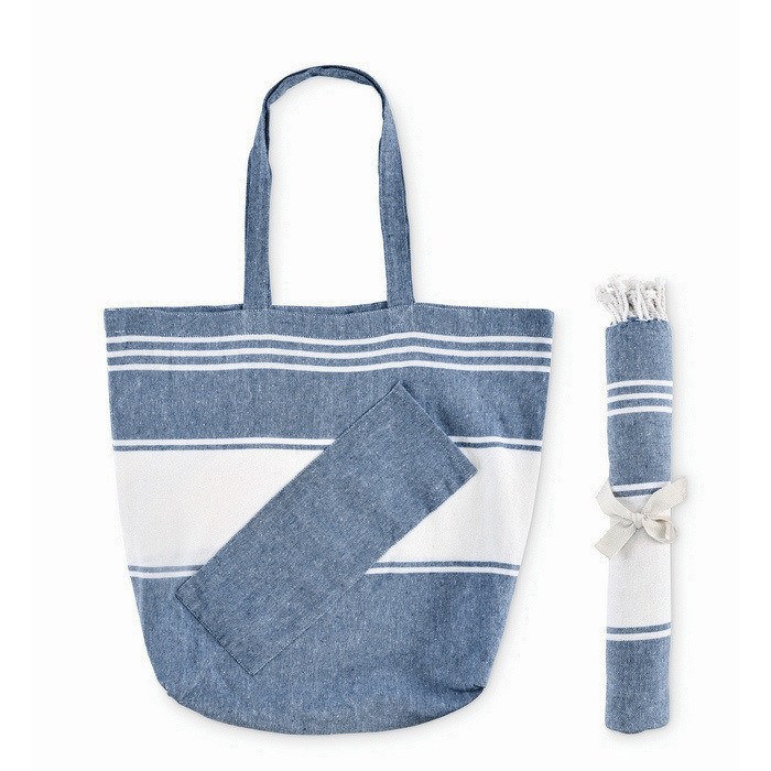 Set di asciugamano e borsa da spiaggia realizzato in miscela di cotone e poliestere. Ideale per eventi estivi, facilita il trasporto e l’organizzazione delle tue attività.
