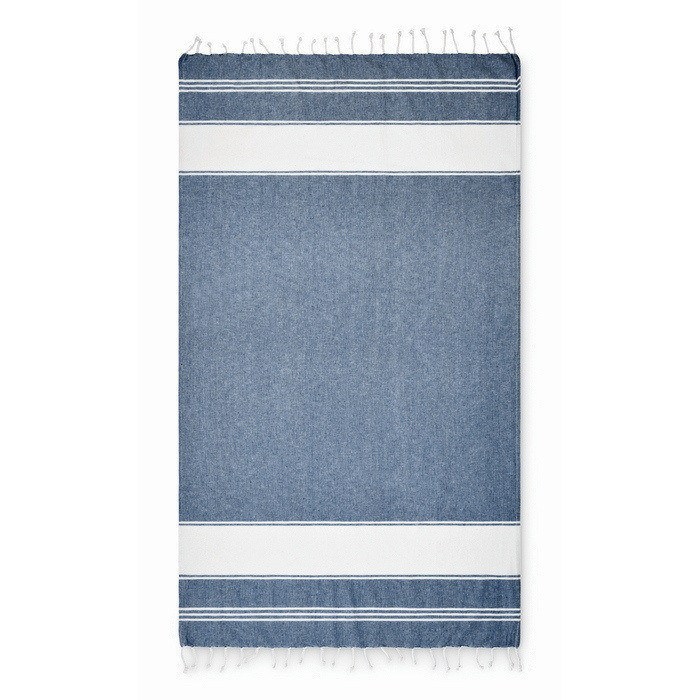 Set di asciugamano da spiaggia tipo hammam con borsa da spiaggia, realizzato in miscela 70% cotone e 30% poliestere con grammatura di 180 g/m². L’asciugamano offre un formato pratico da portare in viaggio, a eventi all’aperto o durante le giornate estive, e la borsa aiuta a trasportarlo e riporlo in modo ordinato. Materiale leggero e facile da maneggiare, pensato per un uso frequente. Opzione utile per kit aziendali estivi, iniziative in spiaggia o regali per i dipendenti.