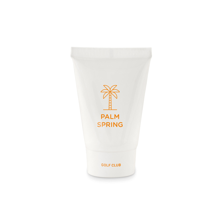 Proteggi i tuoi clienti dalle scottature solari regalando loro come gadget da campeggio questa crema solare in formato 45ml che potranno portare in borsa.