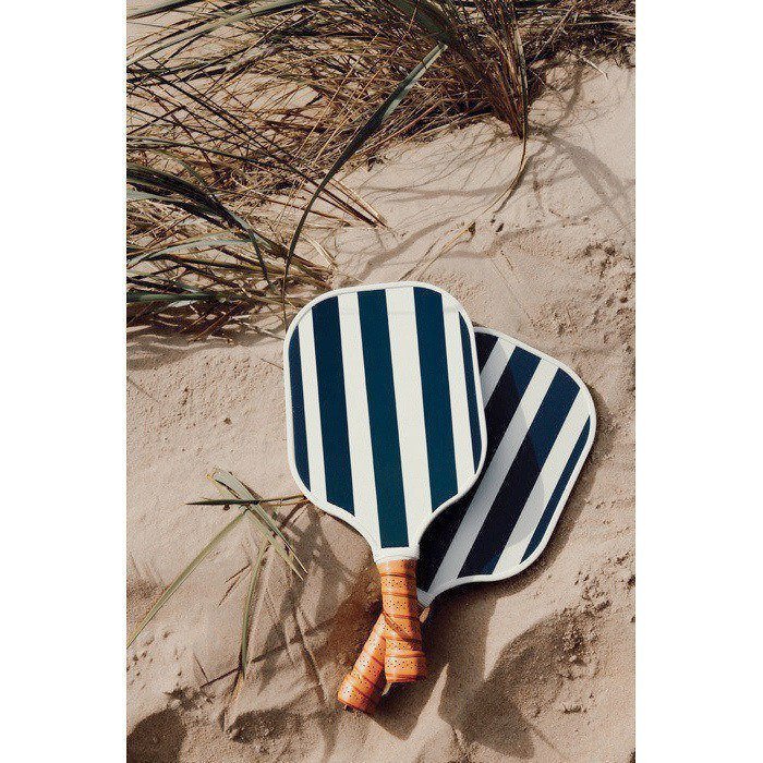 Set da pickleball in compensato con Certificazione di Gestione Forestale Sostenibile (FSC®), pensato per giocare all’aperto in tutta comodità. Include due racchette e una pallina per iniziare la partita senza accessori aggiuntivi. Un lato presenta un classico design a righe bicolore e l’altro una finitura bianca pulita, facile da personalizzare. Il manico in pelle sintetica (PU) migliora la presa e riduce l’affaticamento durante le sessioni più lunghe. Include un foglietto di istruzioni per iniziare rapidamente. Utile per iniziative di branding in eventi e attività aziendali.