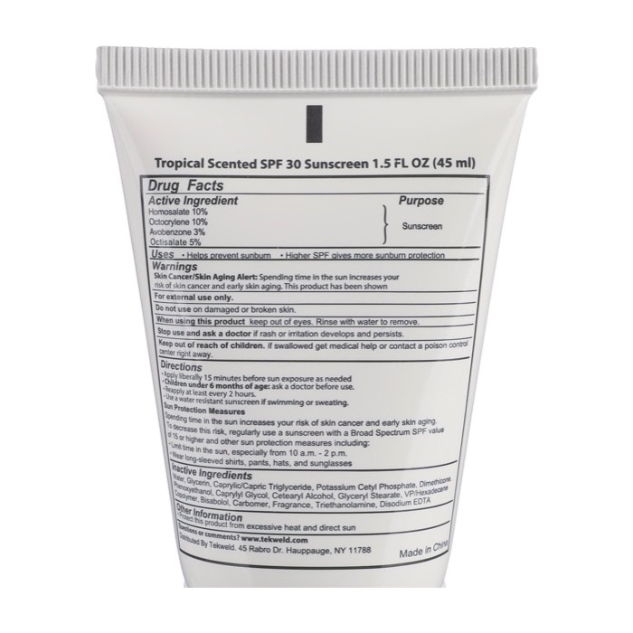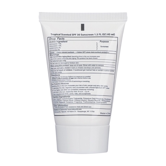 Tubo di protezione solare in PE riempito con 45 ml di protezione solare SPF30 profumata alla vaniglia. Dermatologicamente testato e con una durata di conservazione fino a 3 anni dalla data di produzione.