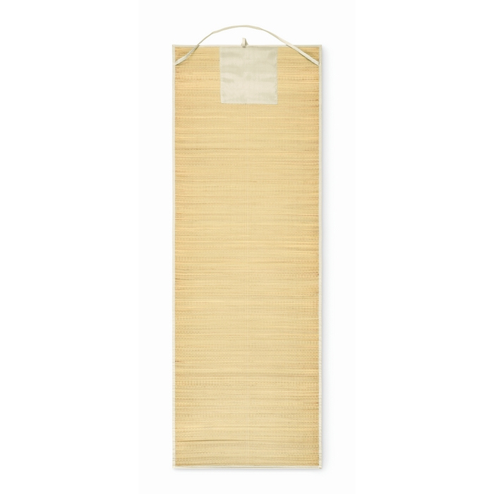 Stuoia da spiaggia in paglia naturale arrotolabile con tracolla di trasporto in poliestere. La struttura leggera si ripone facilmente arrotolandola, occupando poco spazio in borsa o nel bagagliaio. La tracolla aiuta a portarla a spalla e a mantenerla ben fissata quando non è in uso. La finitura in fibre naturali dona un aspetto semplice e riconoscibile, adatto a campagne stagionali. Opzione pratica per regali estivi, welcome pack in hotel o attività di branding in eventi all’aperto.