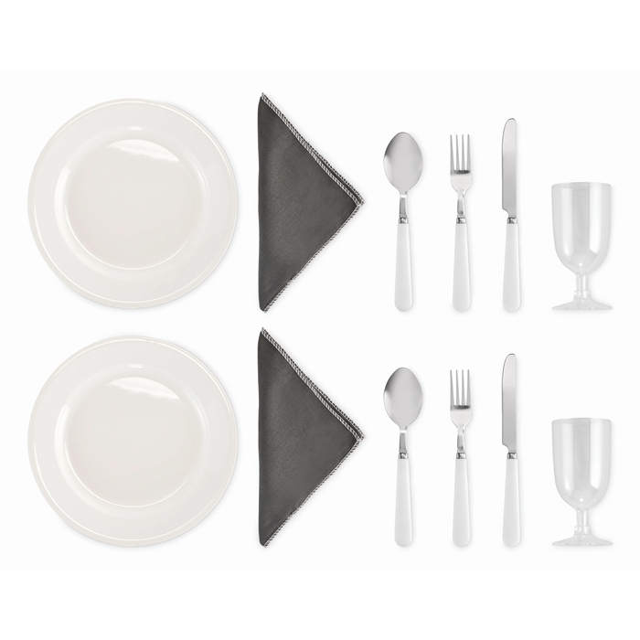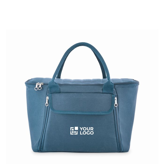 Borsa frigo da picnic in poliestere 600D RPET pensata per 2 persone. Integra una tasca frontale con cerniera per organizzare il contenuto e facilitare l’accesso durante il tragitto. Include posate in acciaio inox, 2 piatti in PS, 2 bicchieri in PS e 2 tovaglioli in cotone, tutto pronto per l’uso immediato. Formato pratico per il trasporto in auto o a piedi. Adatta per welcome pack, regali per il team o campagne stagionali.