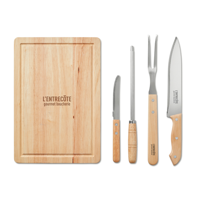 Set accessori BBQ con tagliere legno in custodia con manico Steakchef