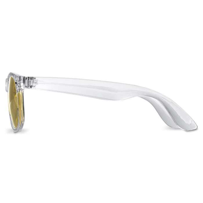Occhiali personalizzati con logo con protezione UV400 e montatura trasparente ideale per entrambi i sessi. Imprescindibili in qualsiasi campagna estiva.