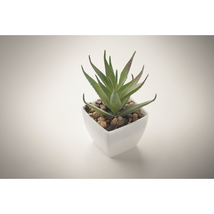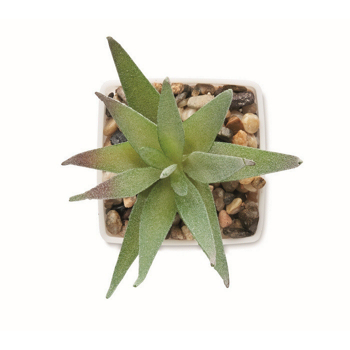 Mini pianta artificiale in PP a forma di aloe vera, pensata per essere collocata su scrivanie, banconi o sale d’attesa senza necessità di irrigazione né cure. Il materiale plastico offre leggerezza e facilita la pulizia, quindi può essere spostata e riposizionata con facilità. Le dimensioni compatte aiutano a mantenere una presenza discreta negli spazi di lavoro o nei punti di accoglienza clienti. Opzione pratica da includere in welcome pack, kit per eventi o omaggi aziendali in ufficio.