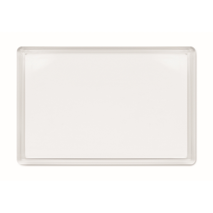 Portafoto rettangolare in acrilico con chiusura magnetica, pensato per mostrare foto da 8,8 x 5,6 cm con un montaggio rapido e pulito. Il pezzo mantiene l’immagine centrata e protetta e si posiziona facilmente su superfici metalliche come il frigorifero o pannelli magnetici. Il formato compatto aiuta a risparmiare spazio senza perdere visibilità, e l’acrilico offre una finitura nitida nell’uso quotidiano. Utile come omaggio aziendale in welcome pack o campagne interne con ricordi di team.