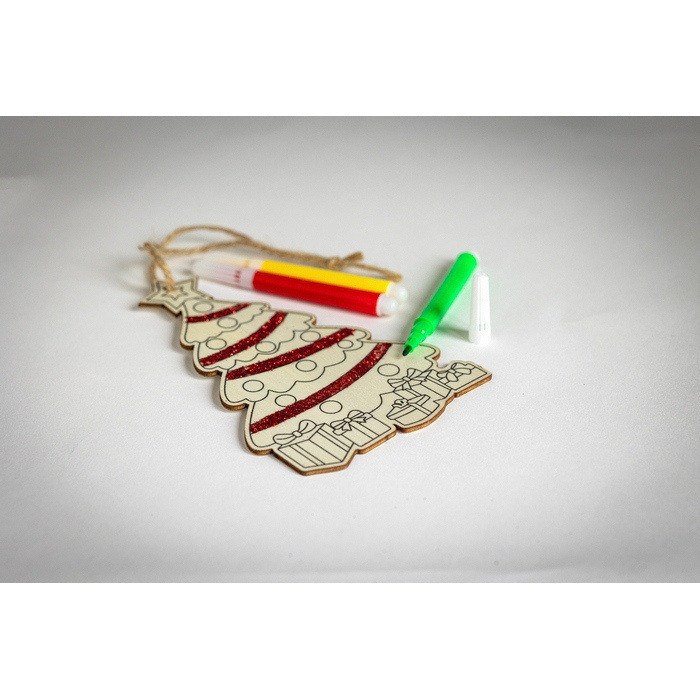 Decorazione natalizia in legno da colorare ideale per aziende creative.
