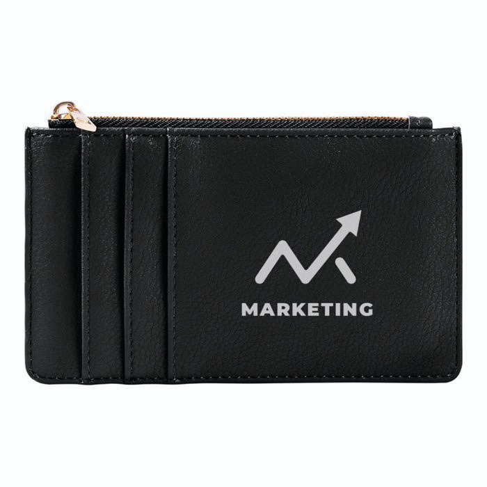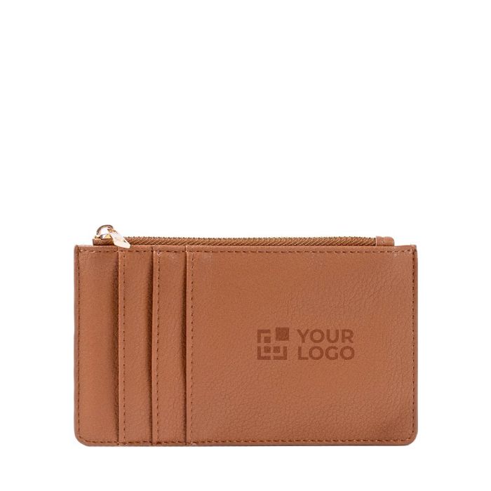 Accessorio semplice in similpelle, resistente e durevole, per trasportare carte di credito e monete. Valorizza il tuo brand con un dettaglio elegante.