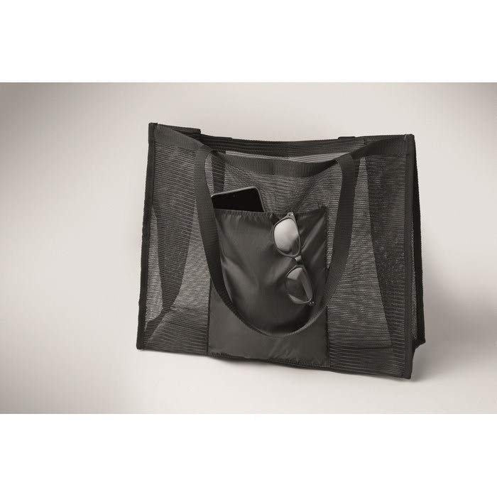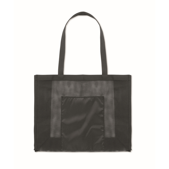 Borsa shopper in rete con tasca frontale per fiere e retail