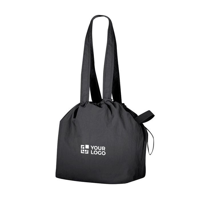 Borsa pieghevole con cordoncino regolabile e tasca interna, pensata per portare il tuo brand in fiera e in ufficio senza occupare spazio quando non la usi.