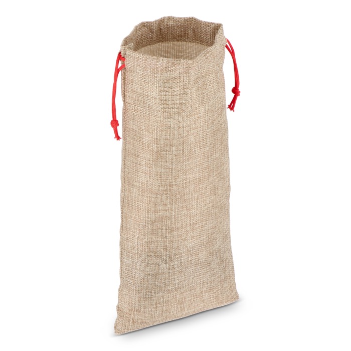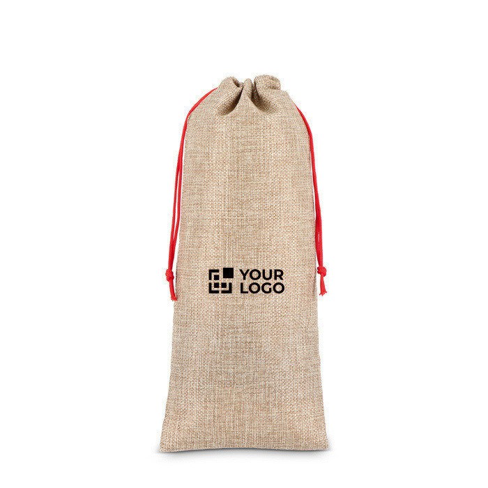 Sacchetto per bottigli di vino con design rustico in juta e cordino