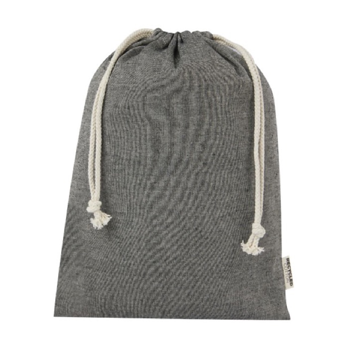 Sacchetto in cotone riciclato perfetto per regali aziendali sostenibili.