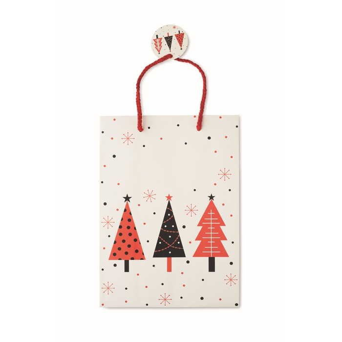 Borsa regalo di carta natalizia media, elegante e resistente.