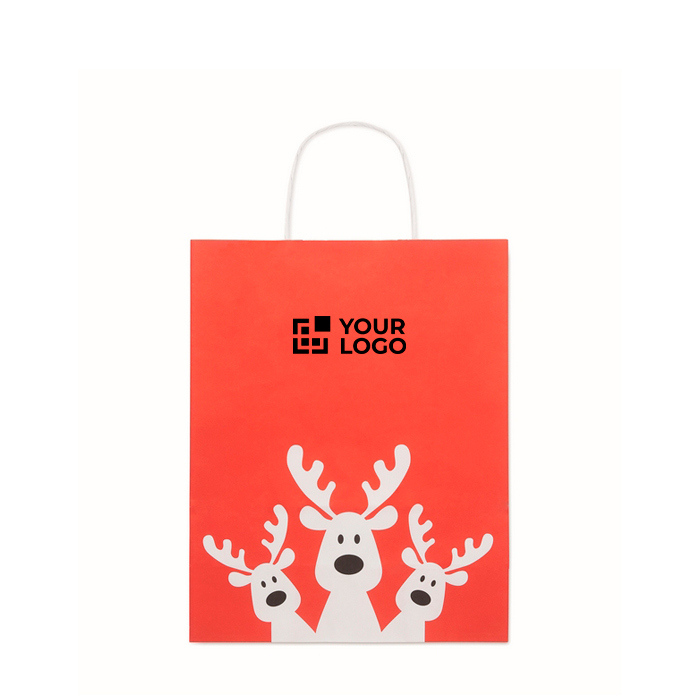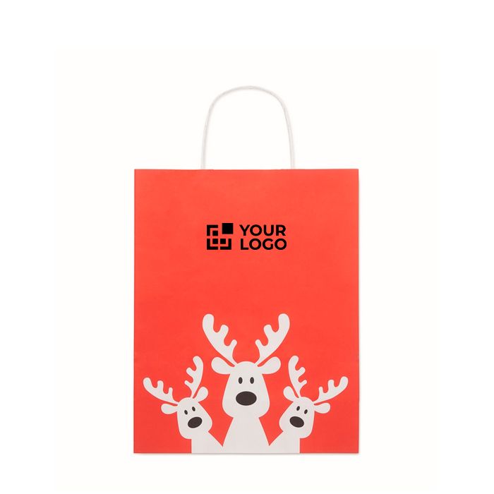 Proietta la tua identità a Natale con questa borsa di carta media, 50% carta riciclata, prodotta nell’UE, un risorsa pubblicitaria utile e sostenibile.