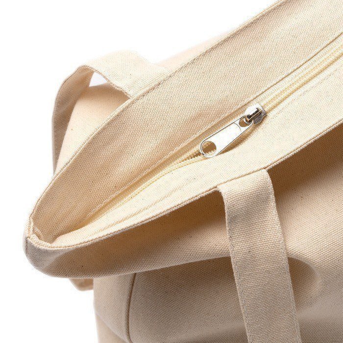 Borsa in cotone da 230 g/m² con soffietto alla base per aumentare la capienza e mantenere meglio il contenuto. Include una chiusura a zip superiore, pensata per trasportare gli oggetti in modo più sicuro durante spostamenti, fiere o nella routine quotidiana in ufficio. I manici lunghi da 70 cm permettono di portarla comodamente a spalla, anche quando è piena. Finitura sobria e unisex, facile da integrare in attività di comunicazione e consegne aziendali con il tuo logo.