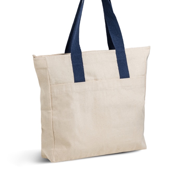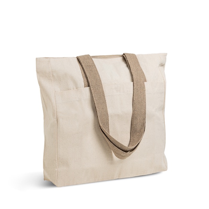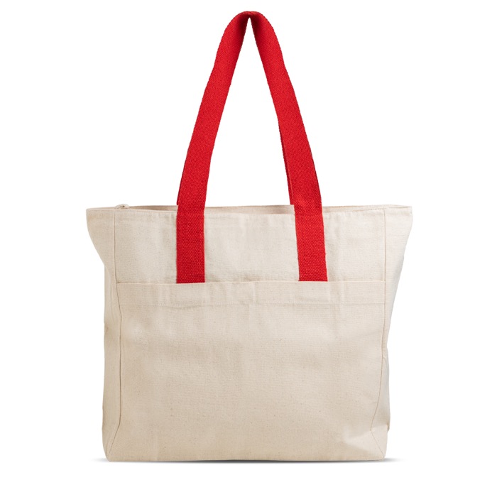 Borsa in cotone canvas con chiusura e manici colorati 280 g/m2