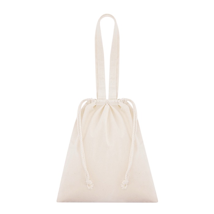 Borsa in cotone con cordini e manici lunghi rinforzati 180 g/m²