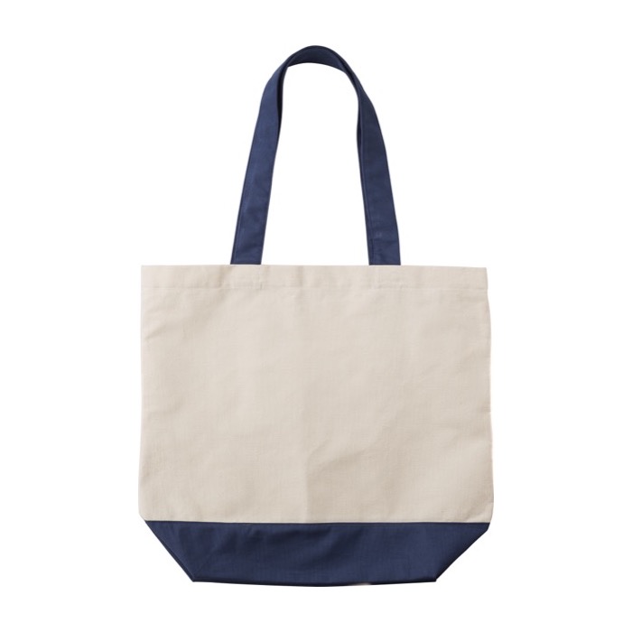 Borsa in cotone resistente con manici e fondo colorati coordinati.