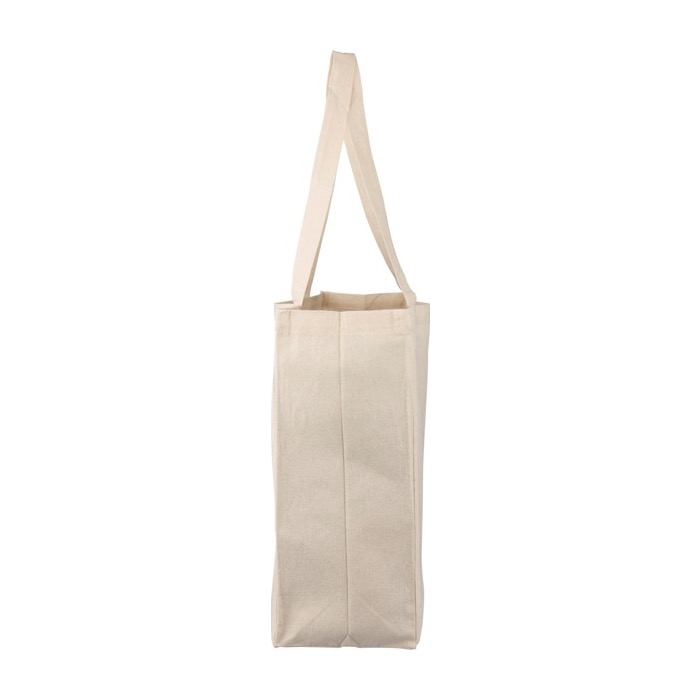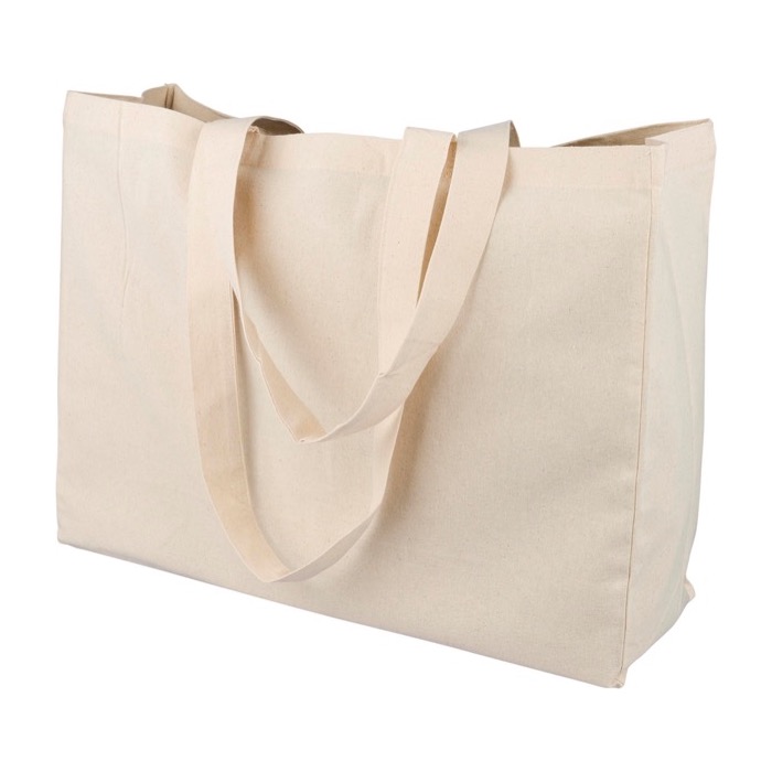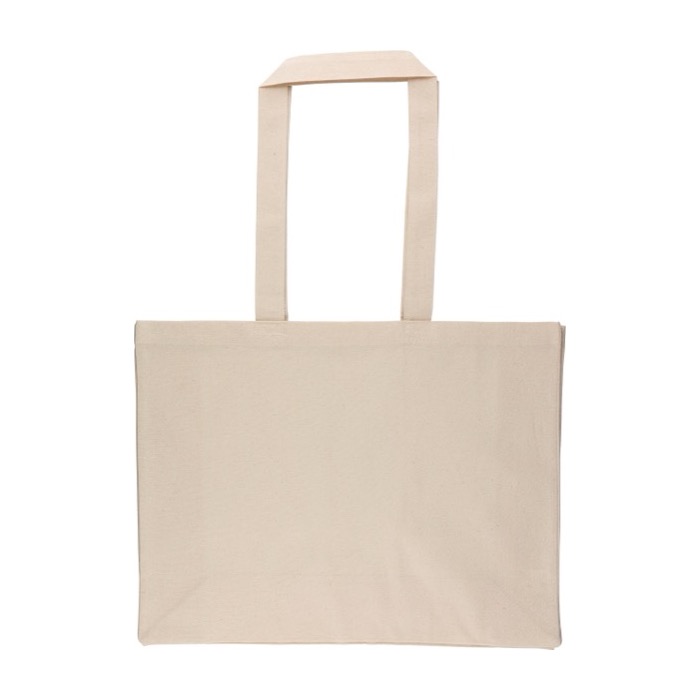 Borsa in cotone naturale con manici lunghi per la spalla e rinforzo: più capienza e più visibilità del brand in fiere, formazioni o consegne interne. Aggiungi il tuo logo!