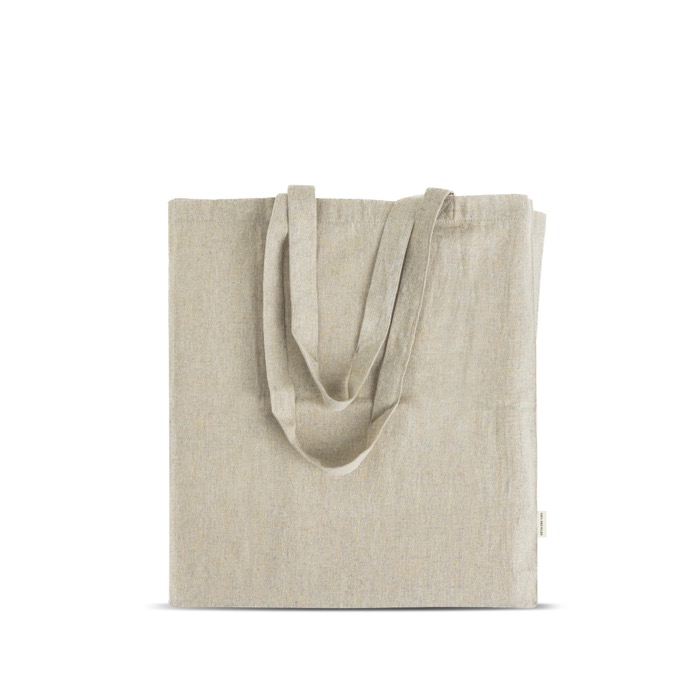 Ottieni un supporto costante per il tuo logo con questa borsa in cotone riciclato mélange con soffietto e manici lunghi. Aumenta la visibilità in eventi, retail o campagne.