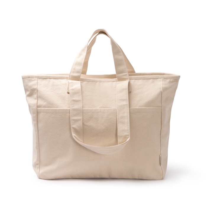 Borsa in cotone riciclato da 420 g/m² con struttura pensata per l’uso quotidiano in contesti aziendali. Include doppi manici rinforzati in due lunghezze per portarla a spalla o a mano. Il soffietto su base e lati offre maggiore capienza e una forma più flessibile quando è piena. Comprende due tasche frontali per organizzare gli accessori e la chiusura con zip nello scomparto principale, utile durante gli spostamenti. Opzione pratica per eventi, attività di brand o uso interno in ufficio.