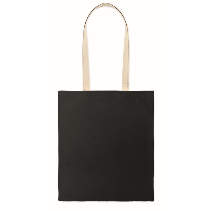 Trasforma il tuo branding con questa borsa in cotone con manici lunghi e design a contrasto. Unisce praticità e stile per distinguersi in eventi e promozioni.