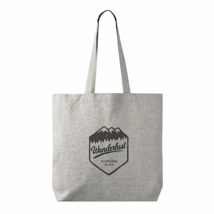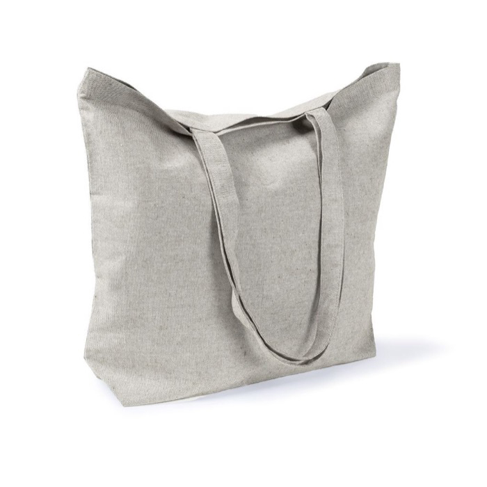 Trasmetti un messaggio di attenzione all'ambiente con una borsa tote in cotone e poliestere riciclati. Con una grammatura di 220 g/m² e certificazione REACH, garantisce robustezza e sicurezza, rendendola un accessorio affidabile. I manici lunghi assicurano un trasporto confortevole, mentre l'utilizzo di materiali riciclati rafforza l'immagine del tuo brand come responsabile e attento alla sostenibilità. Un omaggio funzionale e significativo per fiere ed eventi aziendali, che valorizza il tuo impegno ecologico.