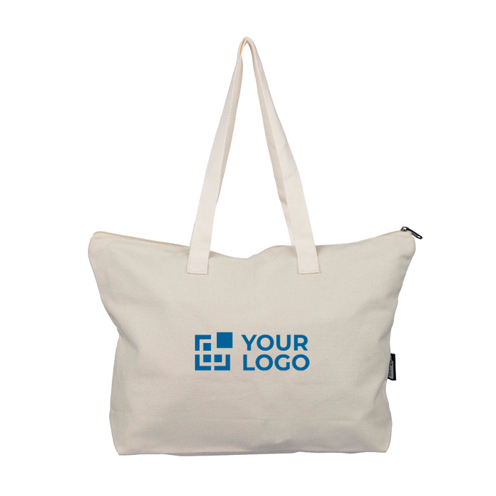 Borsa in policotone riciclato con zip e manici lunghi 330 g/m²
