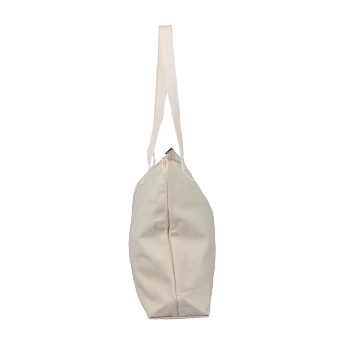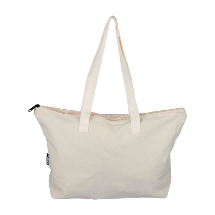 Ampia borsa con chiusura a zip e manici lunghi. Realizzata in policotone riciclato, è perfetta per comunicare i valori di sostenibilità della tua azienda.