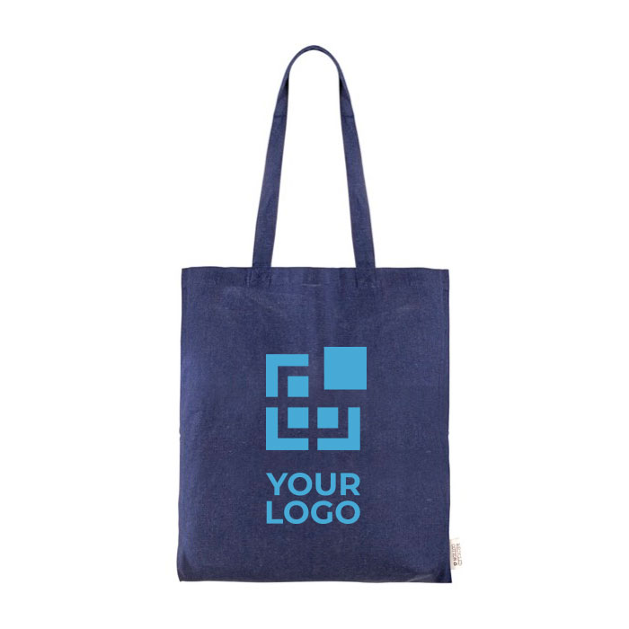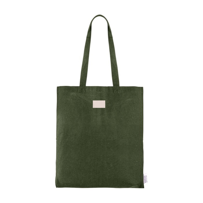Per un merchandising che catturi l'attenzione e comunichi valori, valuta l'uso di una borsa in cotone riciclato con manici lunghi. Disponibile in vari colori, questa shopper metterà in risalto il tuo logo, garantendo un'ampia visibilità. Utilizzala per fiere, eventi o come omaggio ai tuoi clienti: la sua praticità ne assicurerà un uso frequente. Questo non solo aumenta la portata del tuo brand, ma lo associa anche a pratiche di riciclo e sostenibilità, rafforzando la tua reputazione come azienda moderna e responsabile.