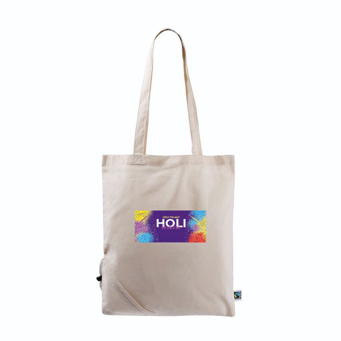 Shopper pieghevole in cotone Fairtrade, pratica ed ecologica personalizzata.