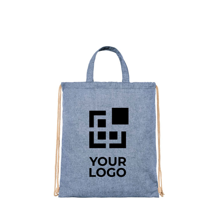 Per unire funzionalità e un messaggio ecologico, scegli uno zainetto a sacca in tessuto riciclato. Questo "due in uno" offre la praticità di uno zaino e la comodità di una borsa con manici corti. I tuoi clienti apprezzeranno la sua versatilità e il tuo logo sarà esposto in diversi contesti d'uso. Questo rafforza la visibilità del tuo brand e lo associa a valori di innovazione e sostenibilità, comunicando un'immagine di azienda moderna e attenta sia alle esigenze pratiche che all'ambiente.
