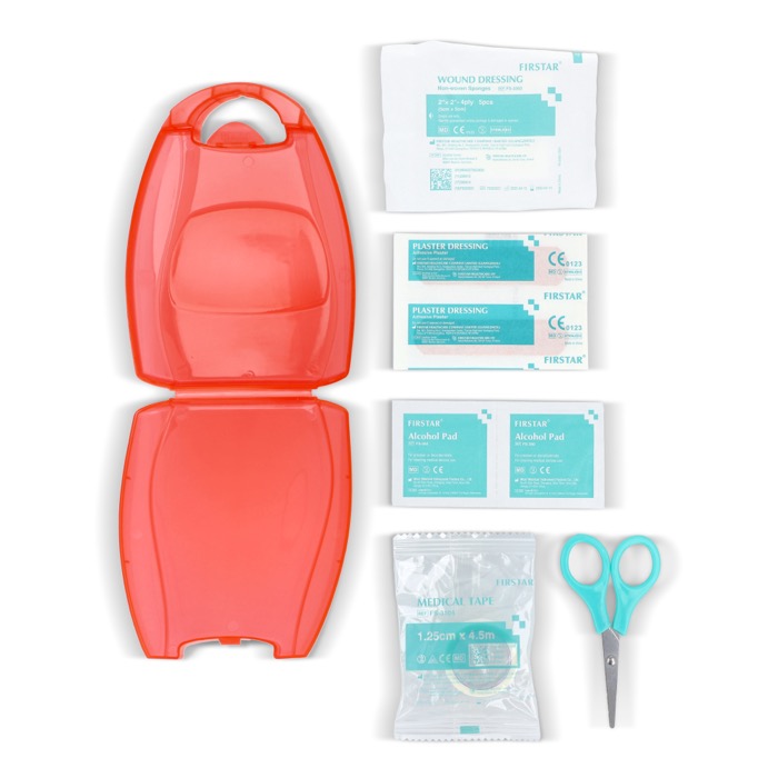 - Kit di pronto soccorso compatto in custodia di plastica resistente