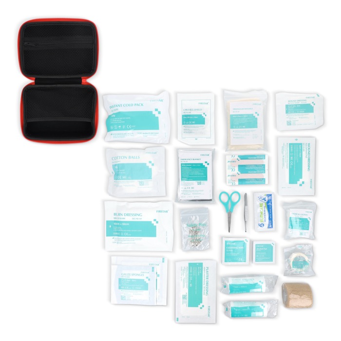 - Kit di pronto soccorso con custodia in gomma morbida e resistente