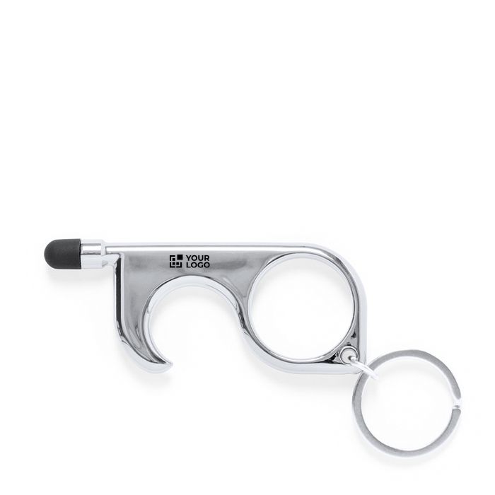 Portachiavi igienico anti-contatto con mini penna touch a inchiostro blu. Realizzato in resistente ABS con finitura metallica e disponibile in un'ampia gamma di colori. Appositamente progettato per evitare di toccare con le mani superfici di uso comune.