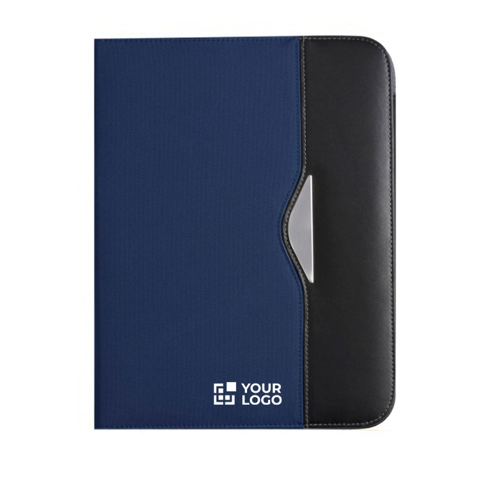 Portadocumenti in formato A4 (circa) con un blocco di 20 fogli e portapenne (penna non inclusa). La cartella è realizzata in pelle rigenerata e poliestere (600D) per offrire un miglior tatto e resistenza. Questo modello è uno dei consigliati per partecipare a congressi poiché è semplice, formale, pratico e, inoltre, può essere utilizzato come regalo promozionale da consegnare ad altri partecipanti. Inoltre, tra le possibilità di marcatura, va evidenziato il transfer digitale, una tecnica a colori con cui quasi nessun logo resiste.