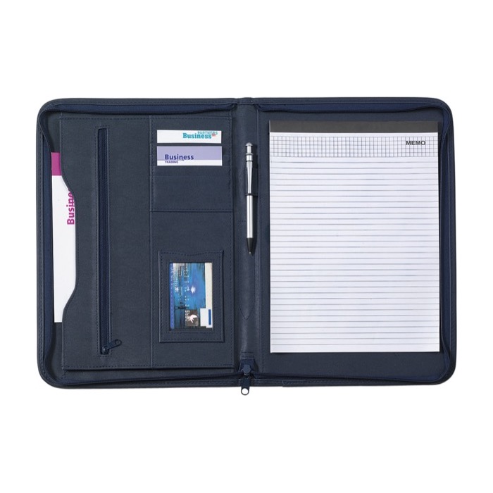 Portadocumenti in poliestere riciclato con chiusura zip e block notes