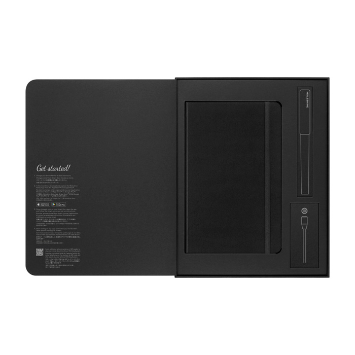 Set di scrittura intelligente con taccuino e penna Moleskine, pensato per passare dalla nota su carta al file digitale senza cambiare il tuo modo di lavorare. Include taccuino classico grande a righe, penna intelligente, caricatore magnetico e ricambio. La carta con Ncodes cattura ogni tratto e lo invia all’app Moleskine Notes per creare una versione digitale modificabile e facile da condividere. Batteria di lunga durata e impugnatura comoda per l’uso quotidiano. Utile in formazioni, riunioni ed eventi aziendali per prendere appunti in maniera agile.