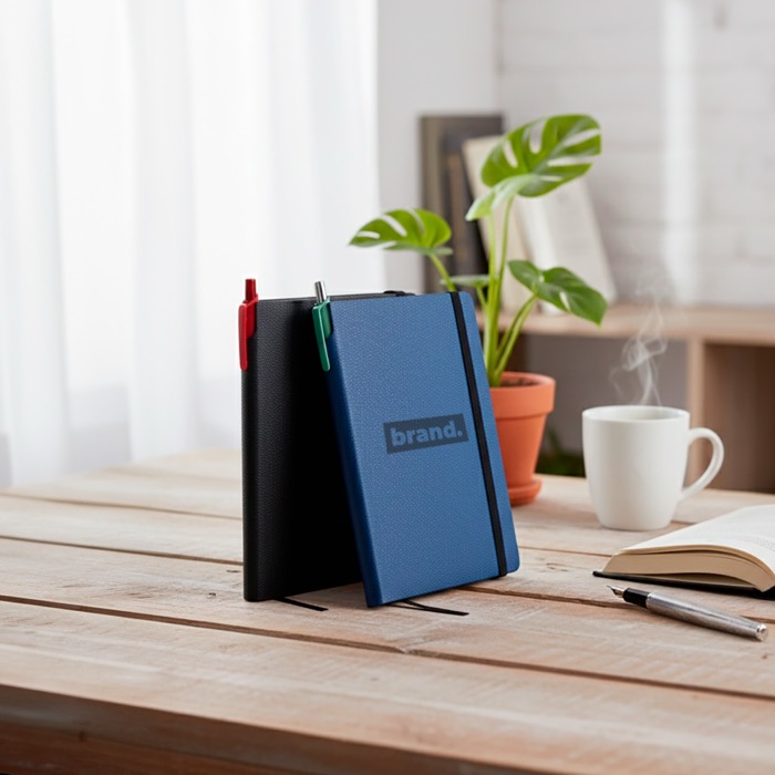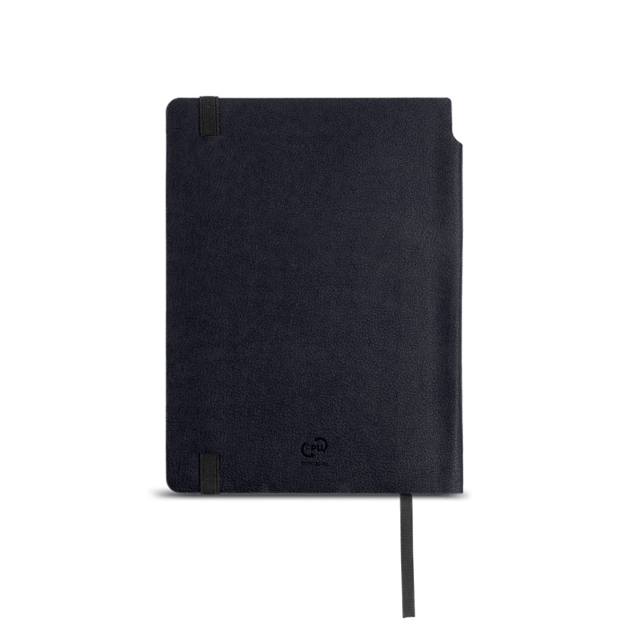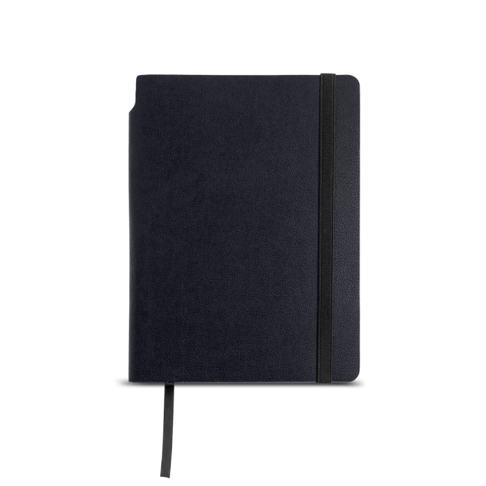 Blocco A5 con copertina flessibile in pelle sintetica riciclata e angoli arrotondati, pensato per un uso continuo in ufficio o in movimento. Include 160 pagine lisce di carta bianca da 80 g con Certificazione di Sostenibilità Forestale, che garantisce la tracciabilità dell’origine della carta. La chiusura elastica aiuta a mantenerlo protetto nello zaino o nella valigetta. Include segnalibro a nastro e un pratico spazio porta penna. Opzione utile per formazione interna, riunioni con i clienti o eventi aziendali con personalizzazione.