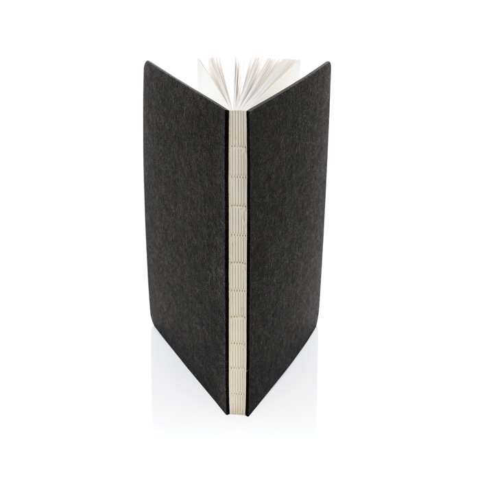 Quaderno A5 eco-friendly con copertina in feltro riciclato certificato.