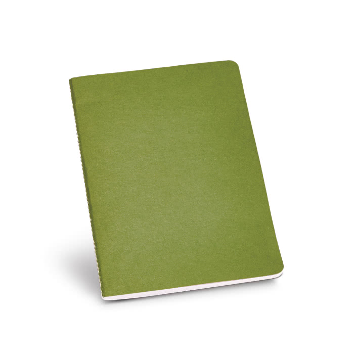 Quadernino realizzato con carta riciclata contenente 40 fogli a righe con copertina colorata.