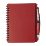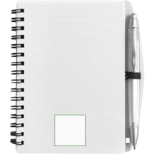 Block notes in formato A6 con copertina in polipropilene (plastica), 65 fogli a righe e una penna a sfera in plastica con clip in metallo colorato, inchiostro blu. Inoltre, offre una buona varietà di possibilità di personalizzazione, sia per il numero di tecniche disponibili che per le aree di stampa abilitate, permettendo così di giocare con il suo aspetto visivo. Questo block notes è compatto, pratico e ha un prezzo economico. Per questo motivo, è adatto sia per gli impiegati che prendono appunti alla prossima conferenza a cui partecipano sia per regalarlo alla prossima fiera a cui partecipa la tua azienda.