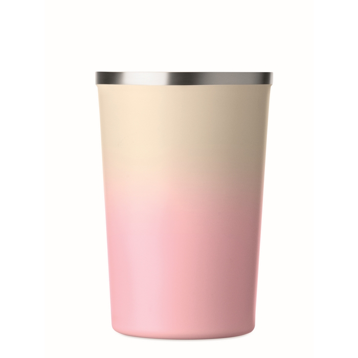 Bicchiere in acciaio inox a doppia parete che conserva la temperatura ed evita le fuoriuscite, trasformando ogni sorso in un’opportunità di branding.