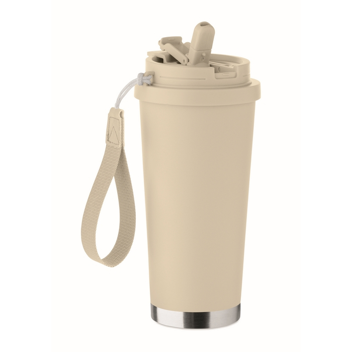 Scegli un bicchiere in acciaio inox riciclato, un accessorio versatile e sostenibile per ogni attività all'aperto. Dotato di un coperchio 2 in 1 e una cannuccia, e un sistema antifuga, offre massima praticità e sicurezza. Questo bicchiere, personalizzato con il tuo logo, non solo promuove un'immagine di azienda attenta all'ambiente, ma si integra perfettamente nello stile di vita dei tuoi clienti. La sua robustezza e funzionalità quotidiana rafforzano la visibilità del tuo brand, accrescendo la fedeltà.