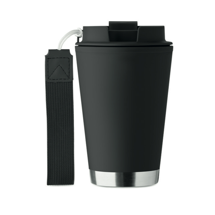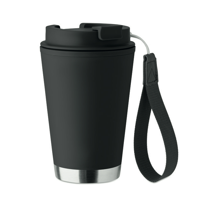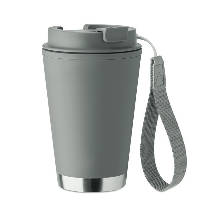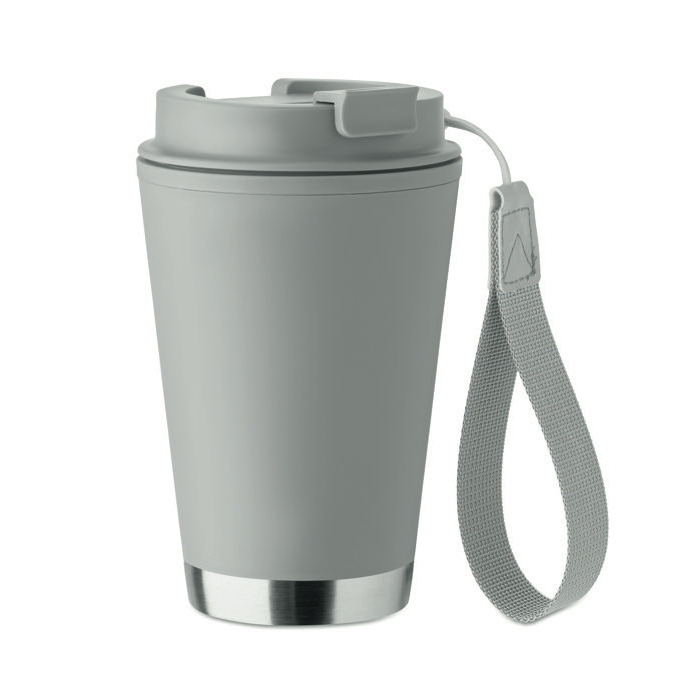 Bicchiere da viaggio RPET, doppia parete, pratico e sostenibile.