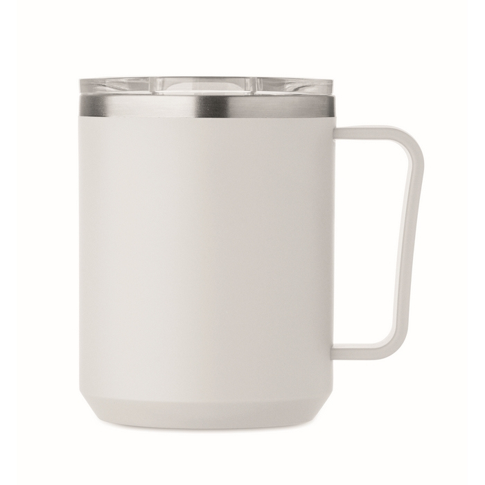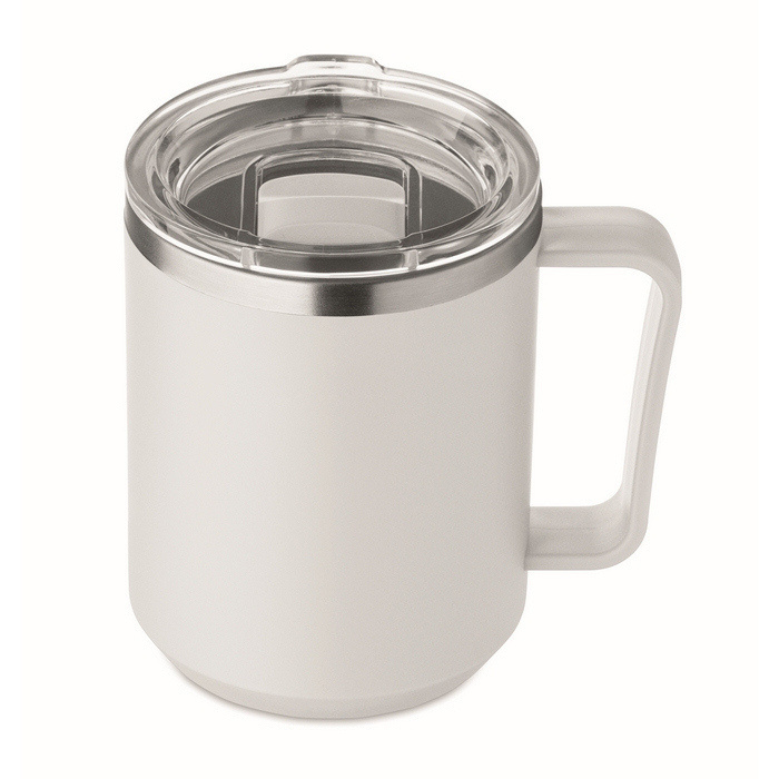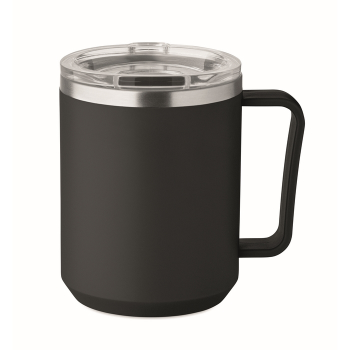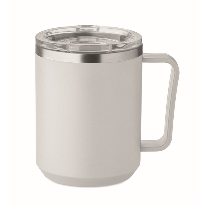 Bicchiere a doppia parete con interno in acciaio inossidabile 90% riciclato e 10% di acciaio inossidabile, ed esterno in PP riciclato. Include un coperchio scorrevole trasparente in AS per bere comodamente e ridurre gli schizzi nella quotidianità. Capacità di 400 ml, adatta per caffè, tè o bevande fredde in ufficio e in movimento. Opzione pratica per allestire sale riunioni, welcome pack o attività di branding per eventi aziendali.